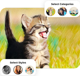 Start by choosing a theme that best fits your memory, like 'Family' or 'Vacation.' Then, select your preferred art style, from classic oil to vibrant watercolor.